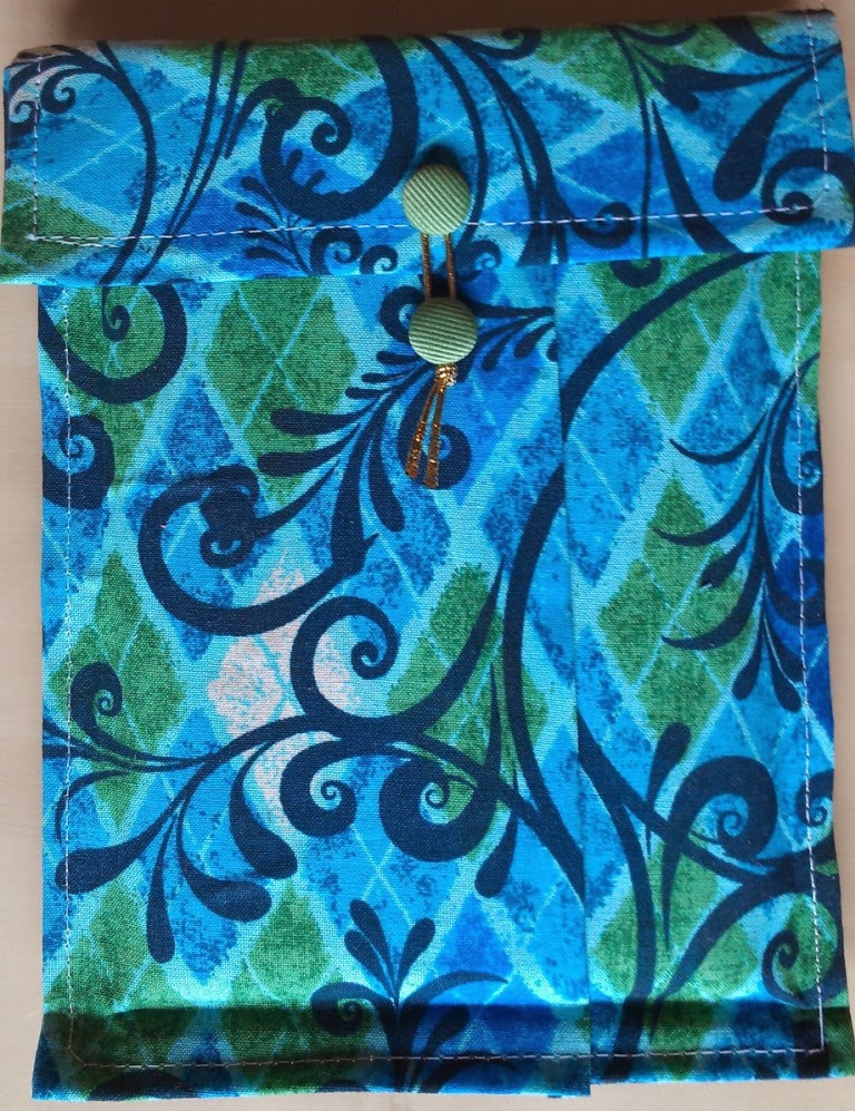 I wanted to make a cover to protect it, so I thought about how I could do that. I used a bubble envelope and some beautiful cotton material I found in the summer a couple of years ago.